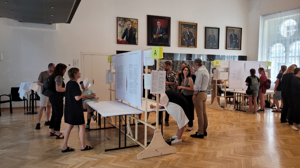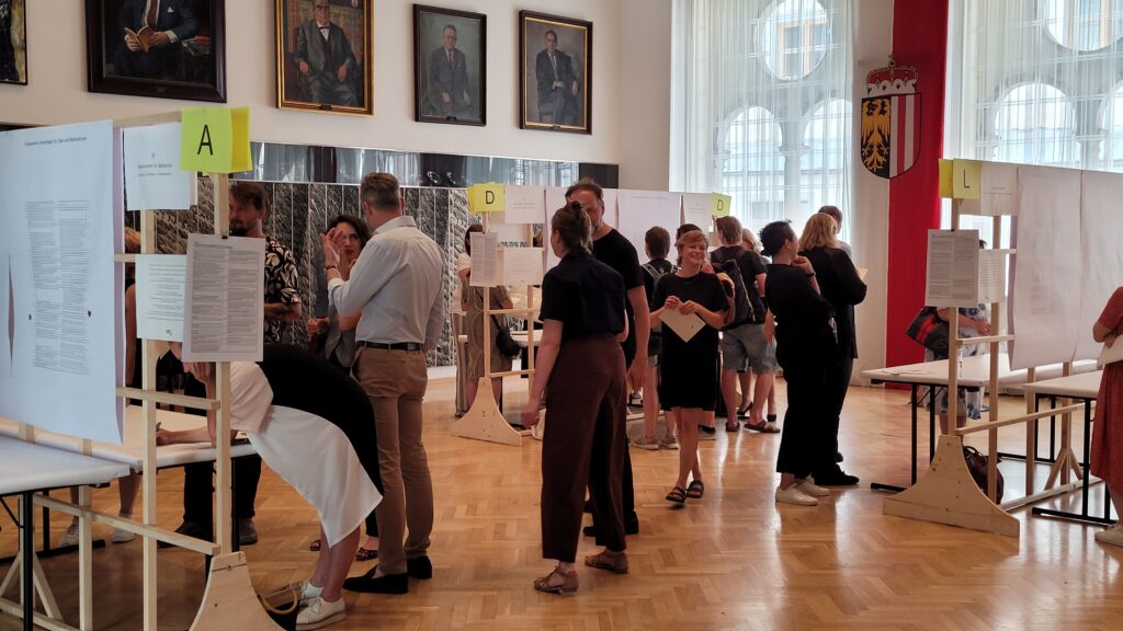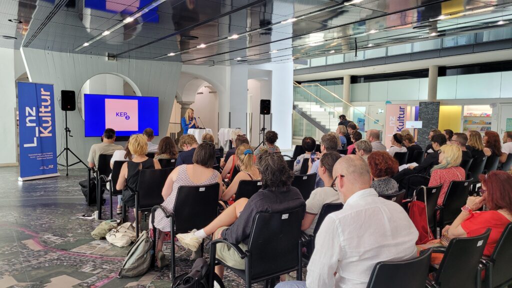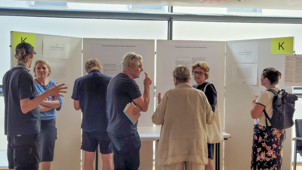 26.6.2025 // Trotz hochsommerlicher Temperaturen nahmen über 70 Persönlichkeiten aus Kunst und Kultur am KEP3-World-Café teil, um möglichst viele Perspektiven in den KEP3-Erabeitungsprozess einfließen zu lassen und diesen laufend zu vertiefen. An 13 Stationen wurden als Zwischenergebnisse jene Ziele und Maßnahmen präsentiert, die im April und Mai in Fokusgruppen diskutiert und vorausgewählt wurden. Das World Café bot den Rahmen, sich über diese fokussierten Ziele und Maßnahmen auszutauschen, Kommentare und Ergänzungen vorzunehmen sowie jene Vorschläge zu kennzeichnen, die einem besonders am Herzen liegen.